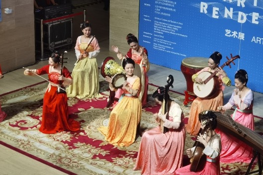 With exotic Silk-Road themed music performed by musicians from the China National Traditional Orchestra, a grand art exhibition titled Silk Road: Artists’ Rendezvous kicked off on the afternoon of Aug 15 at the National Art Museum of China in downtown Beijing.